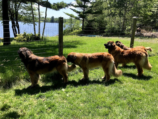 From left to right, Molly, Lexi, Talia (who is wet from swimming) and Pixie! They are enjoying the beautiful day. Molly and Pixie really wanted to go for a swim too, but they have to wait a little longer!